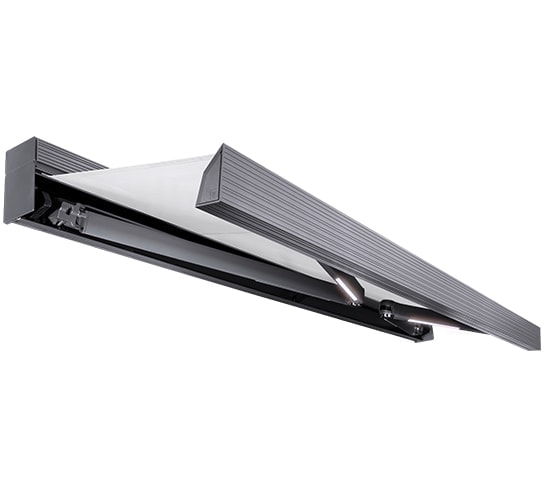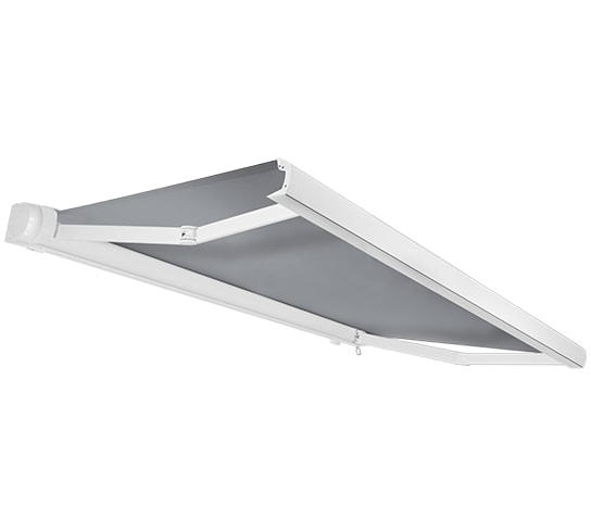 Markisen, die sich in eine Schutzkassette zusammenfalten